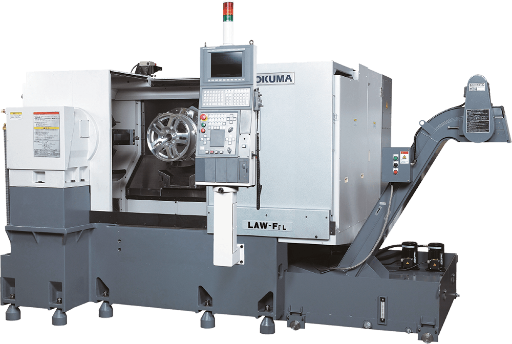 The Okuma LAW-FII is a 2-axis turning machine that occupies little space but delivers big results. Our fast turret index reduces cycle time, letting you produce more wheels more quickly. The simplified X- and Z-axis configuration accommodates wheels up to 500 mm and places a premium on efficient use of space. With its narrow footprint and higher speeds, the LAW-FII creates a cost-effective, space-saving machine that fits in most any wheel production line.