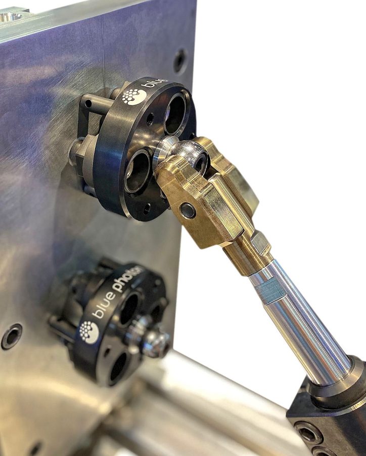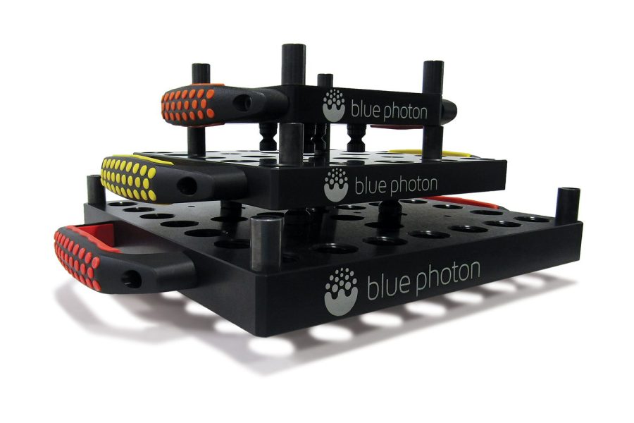 US firm Blue Photon (www.bluephotongrip.com) has designed a new, photo-activated adhesive workholding system, comprising patented grippers and inserts, intended for use with stabiliser systems marketed by Big Daishowa and others that add extra rigidity to tall components while they are being machined.